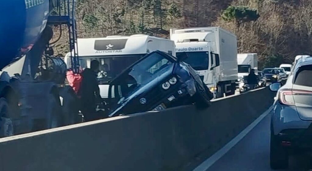 Uma mulher sofreu ferimentos ligeiros, esta manhã, num acidente ao Km 114, no IP3, na zona de Tondela. O carro subiu e ficou “suspenso” no separador central.
