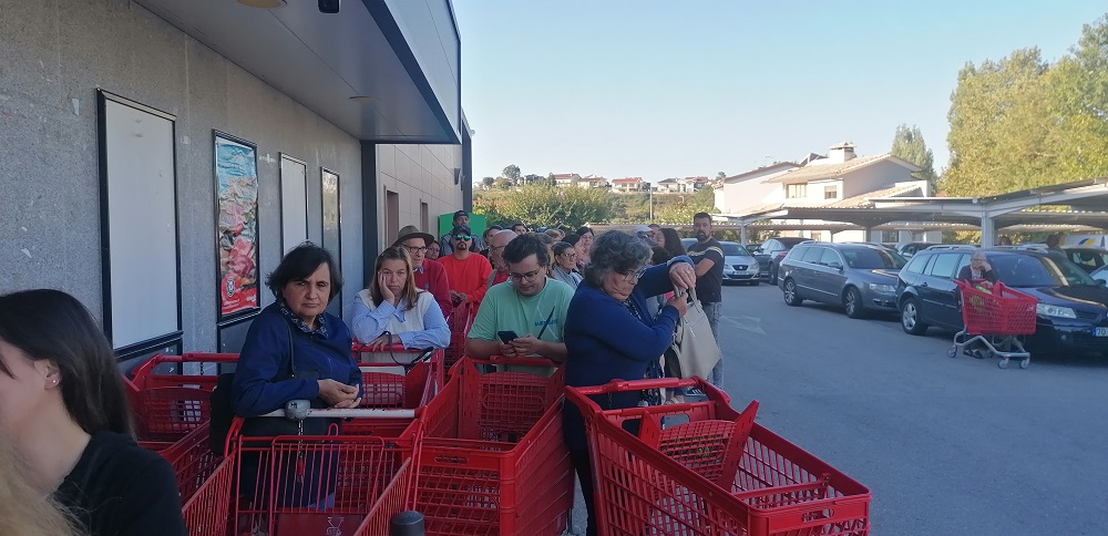 Esta manhã, eram muitos os clientes que faziam fila à porta da loja do grupo Mosqueteiros e que aguardavam pela abertura do espaço, que só veio a acontecer pouco depois das 10h00, para a compra de produtos a preço mais reduzido.