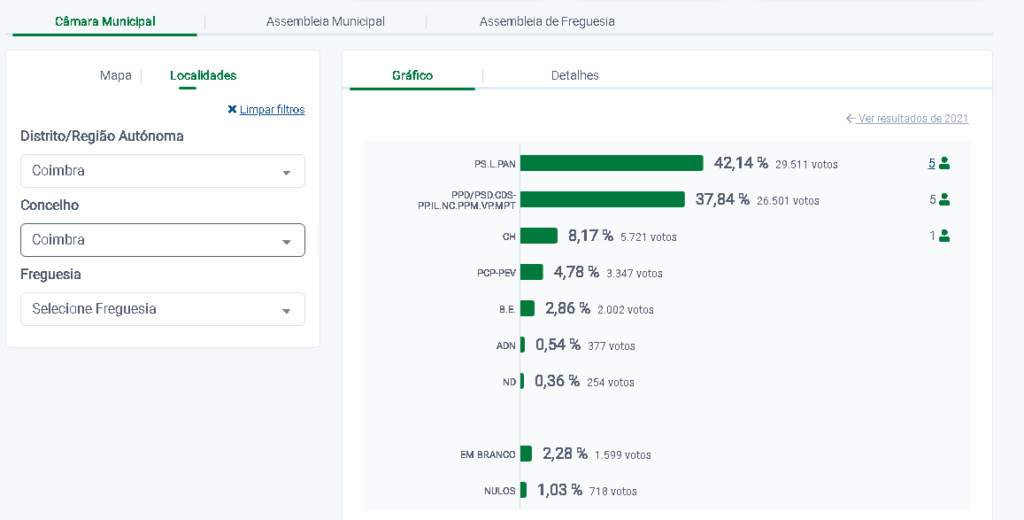 Nas capitais de distrito da região, destaque para Coimbra e Viseu que passam a ser governadas pelo PS.