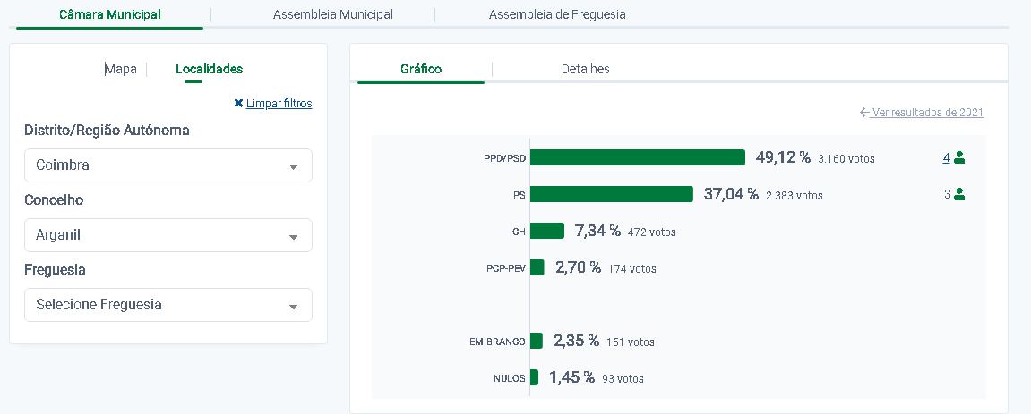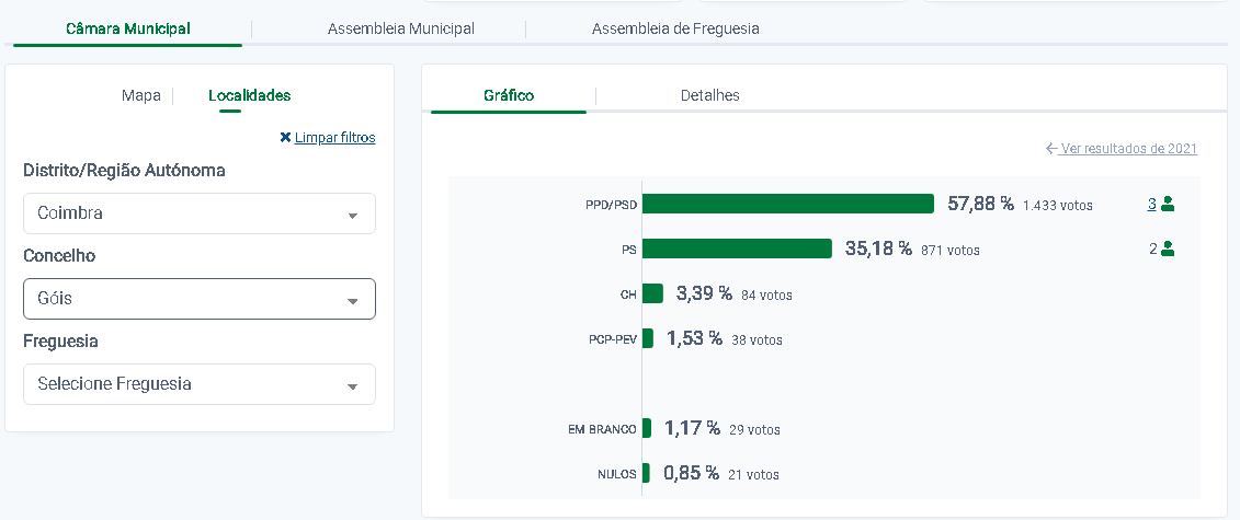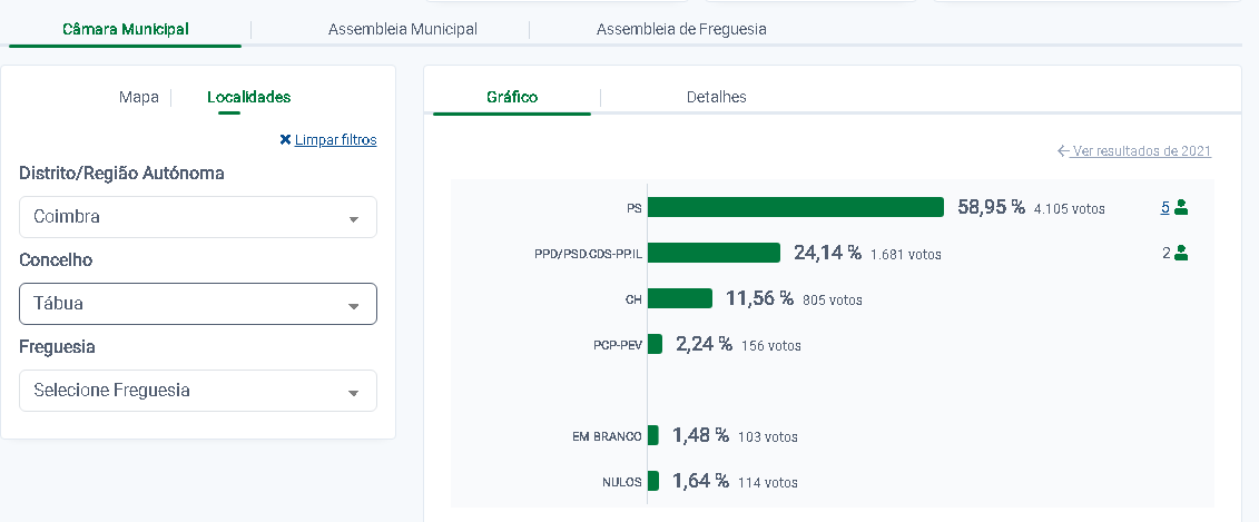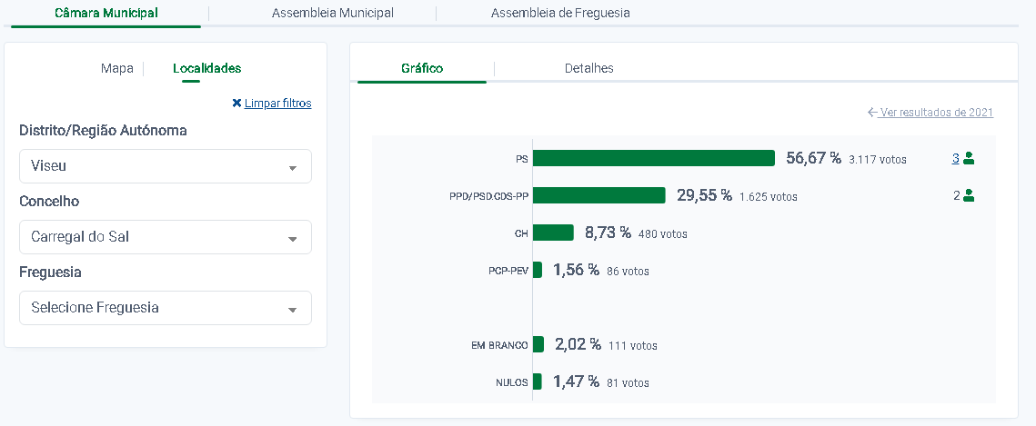 Em Carregal do Sal (Viseu), o PS mantém a liderança.