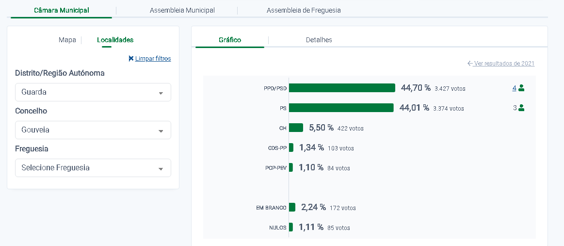 Gouveia (Guarda) continua a ser liderado pelo PSD.
