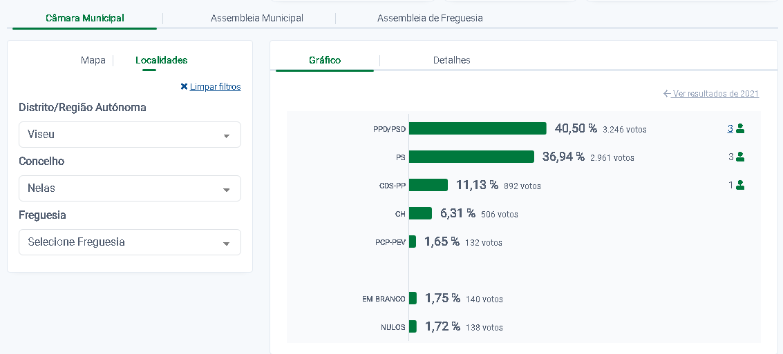 Em Nelas (Viseu), o PSD venceu, mas sem maioria absoluta.
