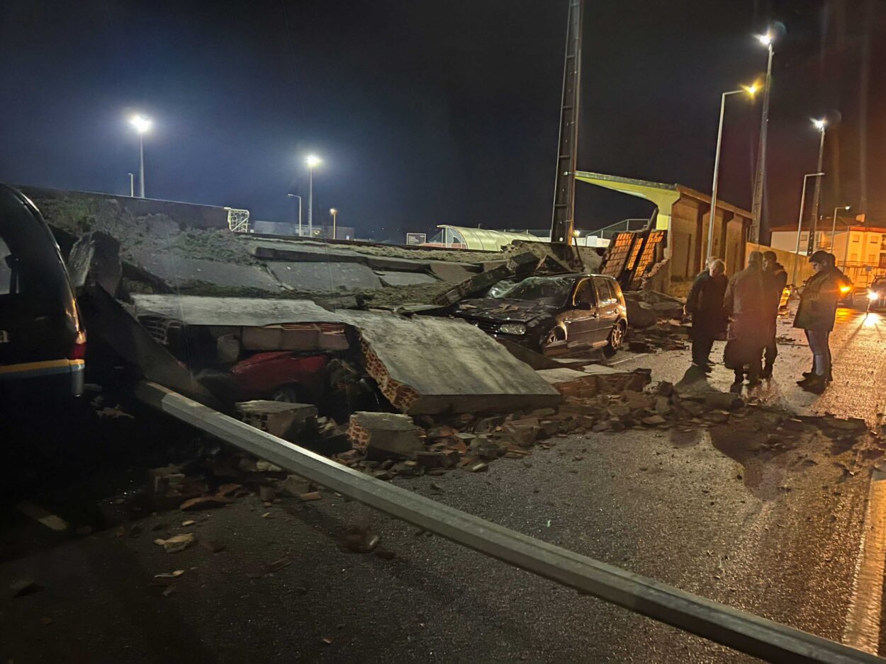 Um dos muros do Campo Desportivo Doutor António Oliveira e Costa Júnior, casa do Grupo Desportivo Tabuense, desabou esta noite em consequência do mau tempo que se tem feito sentir, em particular a forte precipitação que há vários dias não dá tréguas. Há vários carros debaixo dos escombros, como é possível ver na imagem a que a Rádio Boa Nova teve acesso.