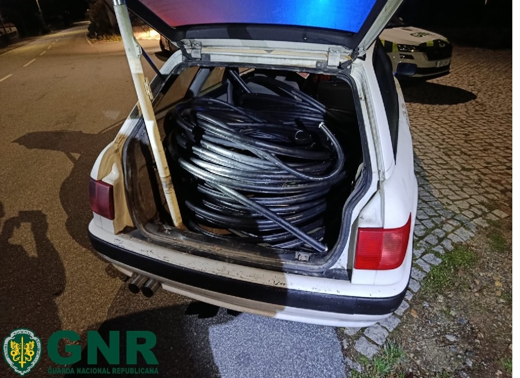 “Ao verificarem que o homem mantinha algum nervosismo, foi realizada uma busca sumária ao veículo, tendo sido possível verificar que transportava 125 metros de cabo de cobre, um alicate de corte, uma bateria e um disco de corte, sem que o suspeito conseguisse justificar a sua proveniência”, adianta a GNR.