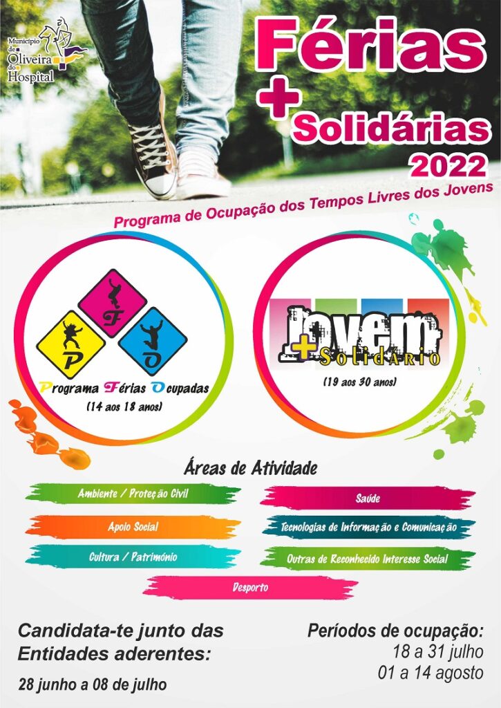 Os jovens interessados já podem apresentar a candidatura à edição deste ano do programa “Férias + Solidárias” promovido pela Câmara Municipal de Oliveira do Hospital. As inscrições decorrem até 8 de julho e devem ser formalizadas, como habitualmente, junto das entidades contempladas pelo programa.