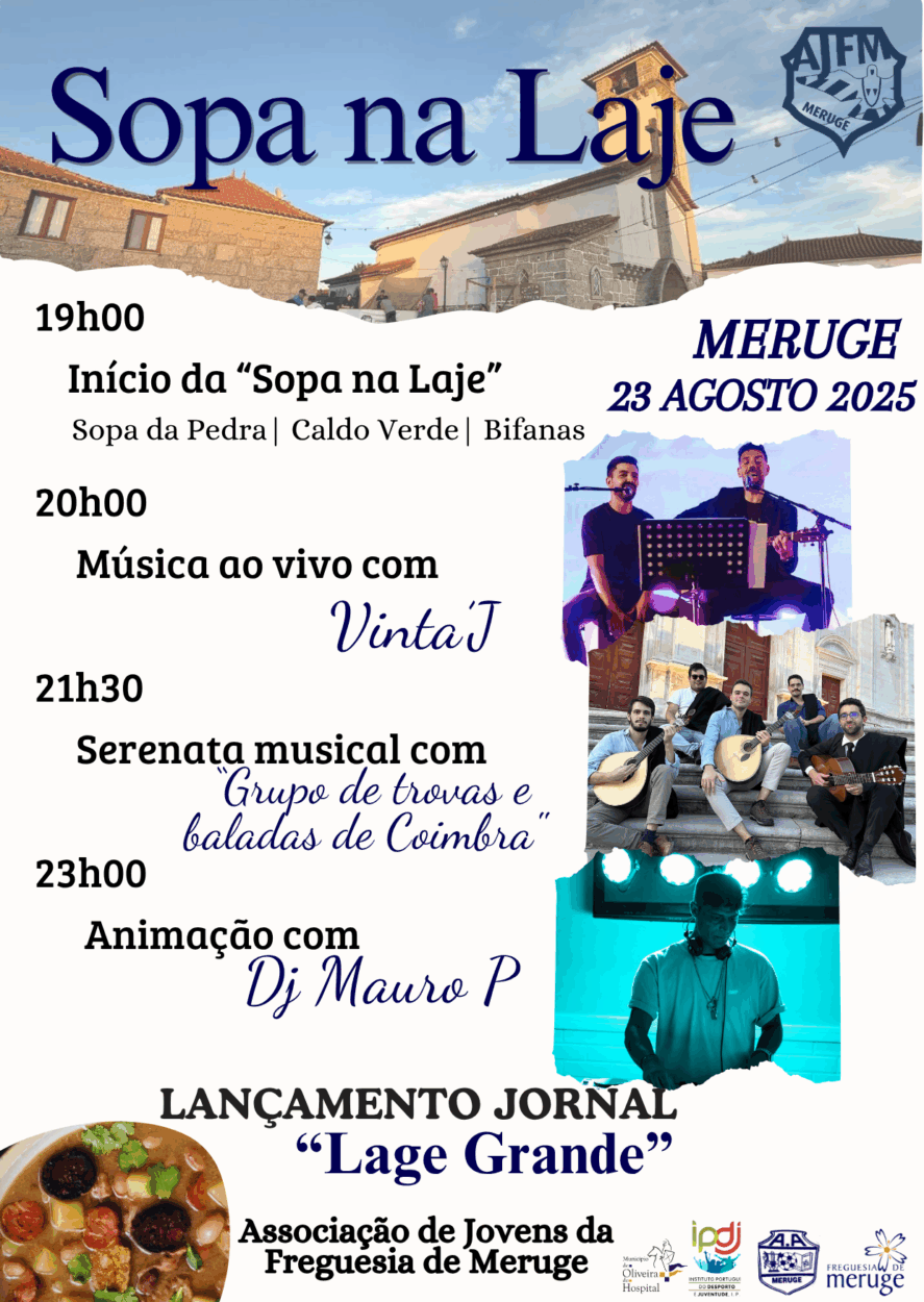 A Laje Grande de Meruge recebe, este sábado , 23 de agosto, “Sopa na Laje”, uma iniciativa organizada pela Associação de Jovens da freguesia.